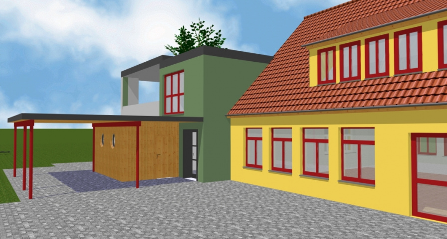 Visualisierung Hofansicht Kinderwagenraum, Bild: Volkhard Lehmann -