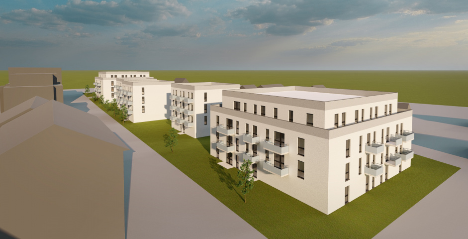 Dort sollen 5 Wohnhäuser mit insgesamt 85 Wohneinheiten entstehen, dabei sowohl Single-Apartments als auch 2-, 3- und 4 Raum-Wohnungen mit insgesamt 5.500 m² Wohnfläche.