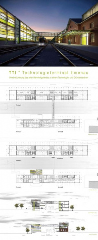 Umstrukturierung des Hauptbahnhofbereiches der Stadt Ilmenau zum Technologieterminal Ilmenau (TTI) mit Flächenangeboten für Technologiefirmen, Gewerbe- und Dienstleister, Ausgründungen der Technischen Universität Ilmenau etc. Entwicklung von Angebote für Mietlabore, Mietbüros und Prüfstände.