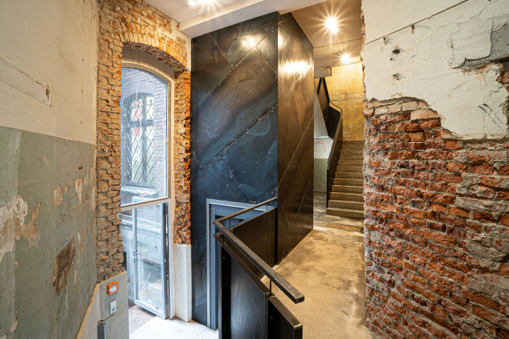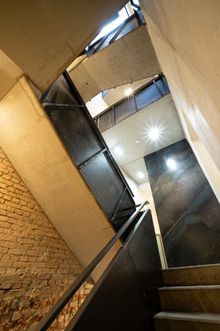 Eine Skulptur.Verändert.Verortet.Visionär.Entitäten. Im Innneren eines Hauses. Ein Denkmal. Es prägt und verbindet neue, kulturelle Nutzungen. Schafft Zugang - für alle Menschen. Erinnert zugleich an die 1000 Jährige Geschichte des Ortes. Spuren sind sichtbar. Schroffer Ziegel trifft rohen Stahl. Kalter Beton auf warmen Putz. Wie ein Wesen windet es sich vom dunklen Unten in die leuchtende Höhe und verändert sich mit jedem Schritt. Endet. Mit einem unvergesslichen Blick.