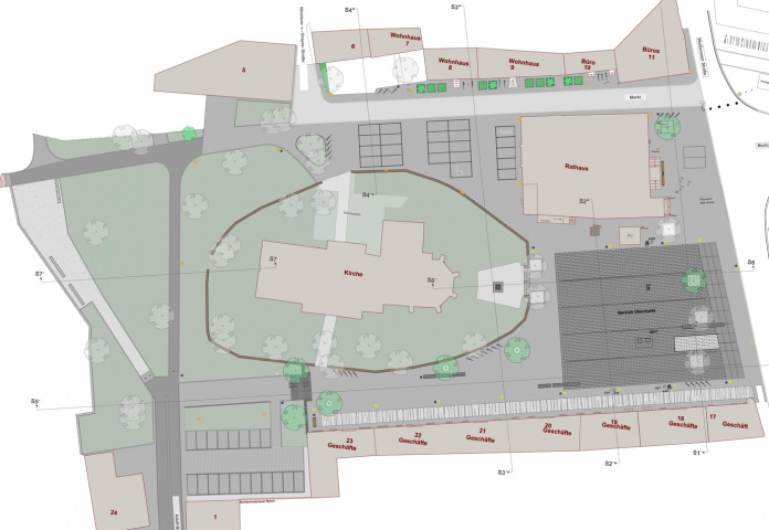 Zum Planungsgebiet gehören weiterhin eine Anliegerstraße und ein Parkplatz hinter dem Rathaus. Die Anliegerstraße wurde ähnlich der Langen Straße und der Marktstraße aus gesägten Granitgroßsteinpflaster gebaut. Für den Parkplatz wurde Basaltkleinsteinpflaster verwendet.