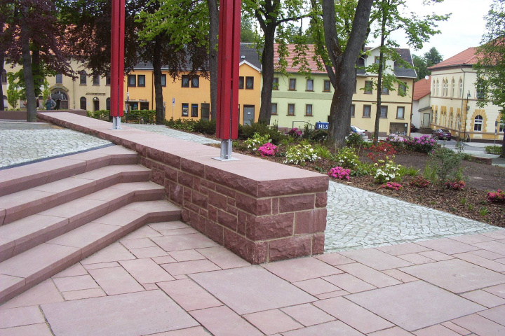 Mauer aus roten Sandstein, Bild: Alexander Volkmann -