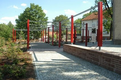 Östlich der Kirche entsteht ein Rhododendrengarten, der mit einer Holz-/Stahlpergola überspannt ist.
