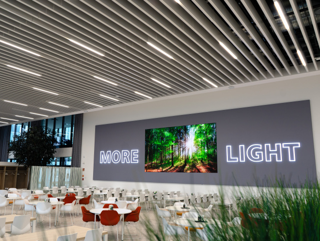 Kulinarik, Architektur und Technik treffen aufeinander. Nicht nur bei Ihren Produkten setzt die Jenoptik AG auf höchste Präzision und Innovation, auch bei der Gestaltung des Arbeitsumfeldes für Ihre Mitarbeitenden werden diese Maßstäbe angesetzt. Mit dem Neubau des Mitarbeiterrestaurants entstanden auf rund 2.100 Quadratmetern und 2 Etagen eine Küche für eine Mittagsversorgung mit täglich 800 Portionen, moderne Kommunikationsbereiche, Meetingräume und eine Café-Lounge für 1.400 Jenoptik-Mitarbeitende. Innen und außen zeigt das Gebäude mit seinem Beleuchtungs- und Haustechnikkonzept sowie dem Claim „More Light“ was bei der Jenoptik im Fokus steht. Das neue Restaurant ist die erste von weiteren Maßnahmen, mit denen das Umfeld für die Jenoptiker*innen nachhaltig und modern entwickelt wird.