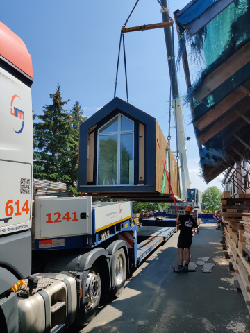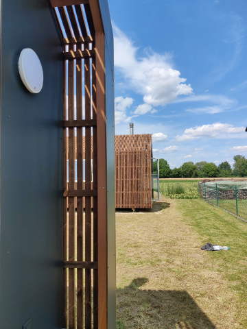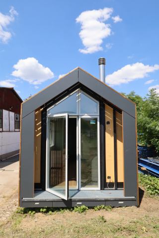 Auf einem Grundstück am Erholungsgebiet Manching/ Niederstimm sind zwei einzugsfertige Mobilhäuser innerhalb eines Tages angeliefert und angeschlossen übergeben worden. Sie werden als Ferienhäuser genutzt, sollen aber auch als Musterhäuser für eine kleine Siedlung am Rande der Stadt Manching zu besichtigen sein. Die Häuser bieten Platz für max. zwei Personen und sind zum Wohnen gedacht. Alle Medienanschlüsse sind vorhanden, auf eine hochwertige Holzbauweise inklusive aller verwendeten Einbau- und Oberflächenmaterialien ist großer Wert gelegt worden. Ein vielfältig gestalteter Außenraum als Bauerngarten mit Brunnen, Hochbeeten und Sitzgelegenheiten für die Nutzer bildet den Übergang zum angrenzenden Landschaftsraum, einem weitläufigen Naherholungsgebiet.