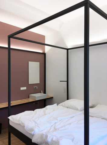 Leuchtendes Himmelbett im Musterzimmer 02, Bild: Joachim Deckert -