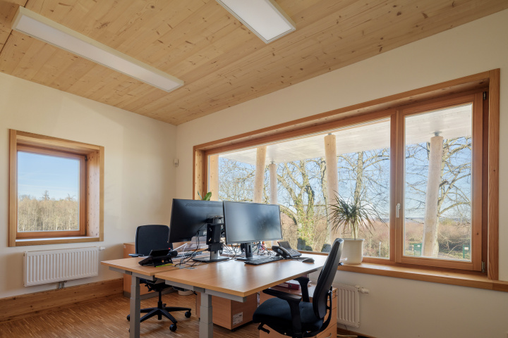 Die Innere Nutzung als Naturerlebniszentrum mit Ausstellungsbereichen, Mehrzwecksaal , Büroräumen und dem Empfangsoval ermöglicht optimale Bedingungen für die Umweltbildung und stellt ihren Naturcharakter durch die Verwendung von Naturmaterialien wie Eichenparkett, Lärchentüren und Lärchenfenstern im Inneren und Äußeren dar.