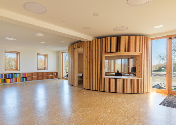 Förderbereich mit Mehrzwecksaal in Holzbauweise