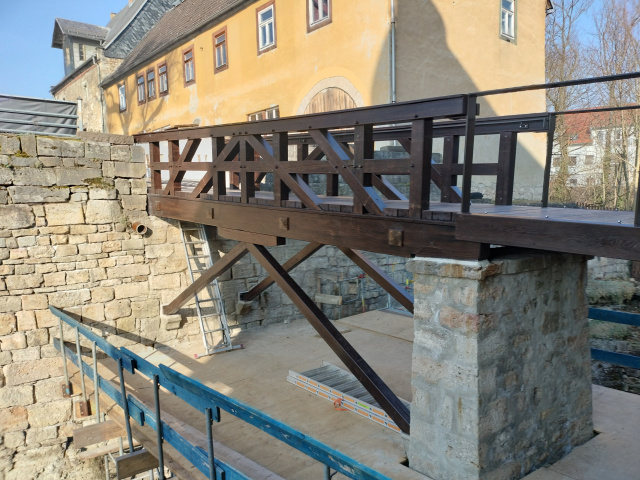 Die historische Burgbrücke des Oberschlosses Kranichfeld musste aufgrund ihres schlechten baulichen Zustands vollständig ersetzt werden. Als Verbindung zwischen Vorburg und Kernburg war ihr Neubau eine wichtige Voraussetzung für die Wiedereröffnung des Schlosses mit einer Dauerausstellung im Jahr 2025.