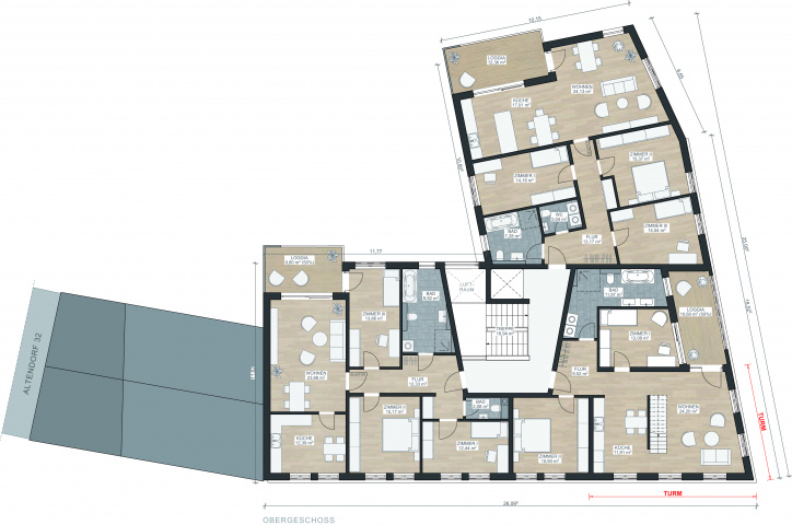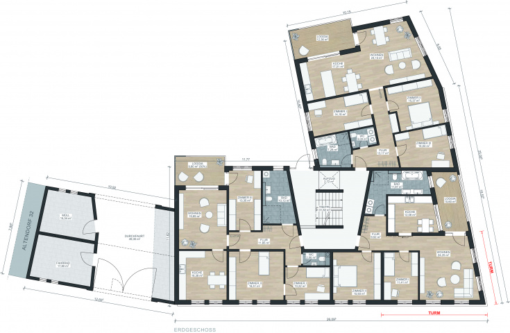 Auf dem Baugrundstück Altendorf 30 in der Altstadt von Nordhausen stand bis 2017 ein denkmalgeschütztes Wohnhaus in Palazzo-Stil, das aufgrund des schlechten und desolaten Bauzustandes abgerissen wurde. In Anlehnung an den historischen Vorgängerbau entstand in enger Zusammenarbeit mit der Denkmalfachbehörde 2018 ein neues zweigeschossiges Wohnhaus mit 6 barrierefreien Mietwohnungen unterschiedlicher Größe. Mit dem Neubau und dessen Eckturm wurden die historischen Raumkanten wieder aufgenommen. Die straßenseitigen Fassaden aus Putz und Verblendmauerwerk nehmen Bezug auf die historische Fassadengestaltung des Vorgängerbaus und fügen sich ein das vorhandene Straßenbild der Nordhäuser Altstadt.