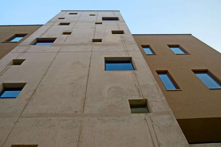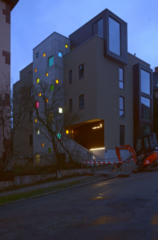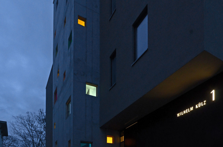 Das gesamte Gebäude ist durch einen Fahrstuhl barrierefrei erreichbar. Das Erdgeschoss ist rollstuhlgerecht nutzbar. Der Tiefhof bietet 4 Stellplätze für die Bewohner. Das Treppenhaus und der gesamte Keller sind in Sichtbeton ausgeführt.