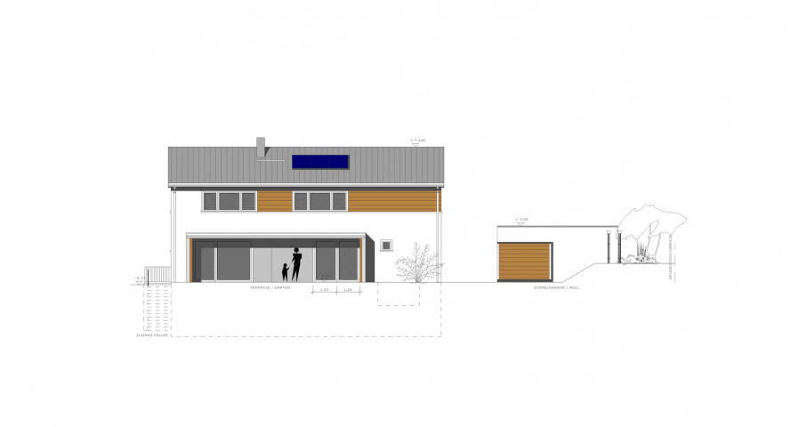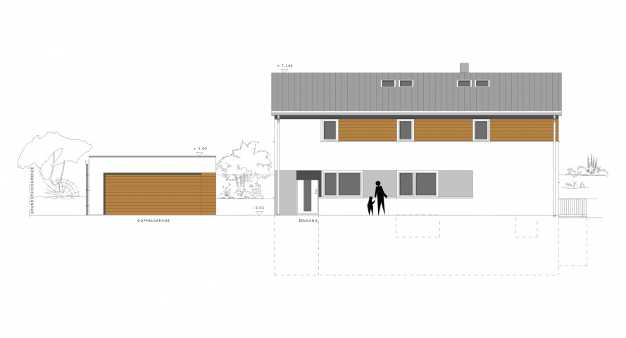 Ansicht Südseite Doppelgarage, Bild: Tobias Winkler -