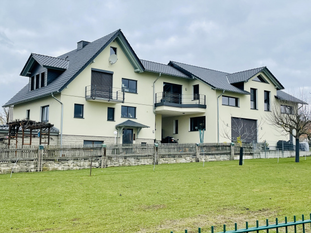 Die beiden Häuser am südöstlichen Rand des Dorfes Küllstedt gelegen, bilden eine funktionale Einheit zum Mehrgenerationenwohnen. Prägend sind die geschaffenen Sichtachsen zwischen dem Innenbereich und den umliegenden Gärten. Die dem Baukörper vorgelagerte Wohnküche bietet mit 3-seitig angeordneten Fenstern die Sichtbeziehung zu dem historischen Ortskern. Im Obergeschoss befindet sich das raumhohe Bindeglied mit Balkon zwischen dem Neubau und dem vorhandenen Einfamilienwohnhaus Typ 65/B. Zur Schaffung eines behaglichen Wohnraumklimas wurden atmungsaktive mineralische Wandaufbauten aus dem traditionellen Baustoff Ziegel mit Kalkputz und Mineralfarbe gewählt. Großzügige Verglasungen im Obergeschoss laden ein, den Fernblick weit über das Eichsfeld hinaus zu genießen.