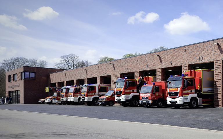 Der Neubau der Feuerwache Arnstadt gliedert sich in einen zweigeschossigen Kopfbau, in dem sich der Verwaltungstrakt mit Schulungsraum, Büroflächen und Aufenthaltsbereichen befinden, und die langgestreckte eingeschossige Fahrzeughalle mit 14 Stellplätzen für Einsatzfahrzeuge. Über eine Klinkerfassade, die in unterschiedlichen Rottönen changiert, wurden die unterschiedlichen Bereiche zu einer Einheit zusammengefasst. Im Erdgeschoss des Verwaltungstrakts öffnet sich der Neubau über eine großzügige Pfosten-Riegel-Fassade der Umgebung und schafft so eine kommunikative Struktur zwischen Stadt und Feuerwehr.