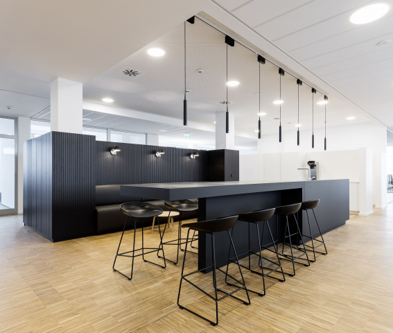 Im zweiten und dritten Obergeschoss sind neue Räume für ca. 100 Angestellte aus dem Bereich Vertrieb und Personal in neuen und modernen Büro- und Arbeitswelten untergebracht.