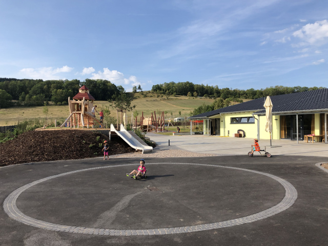 Neubau eines Kindergartens mit interessantem pädagogischen Konzept für 64 Kinder. Die Kreativität der Kinder soll im Haus und im Freigelände gefördert und ermöglicht werden. Das eingeschossige Gebäude bietet Raum auf verschiedenen Spielebenen fürs Spielen, Entdecken, aber auch für Rückzug und Ruhe.