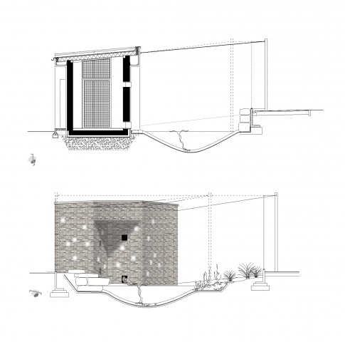 Vor- und Rücksprünge für überdachte Zugänge für Mensch und Tier, sowie in die Fassade zur Belichtung des Innenraums eingestreute Glasbausteine, erzeugen eine abwechselungsreiche Gebäudeoberfläche.