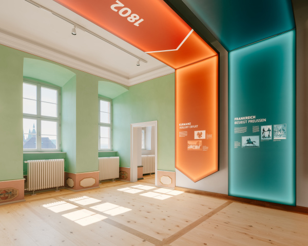 Über ein neu geschaffenes Tunnelbauwerk gelangt der Besucher zum Ausstellungsauftakt in den Kasematten und begibt sich später im Erdgeschoss entlang der reaktivierten Enfilade auf eine Zeitreise durch die bewegte Geschichte der Petersberges.