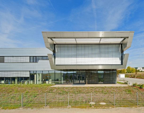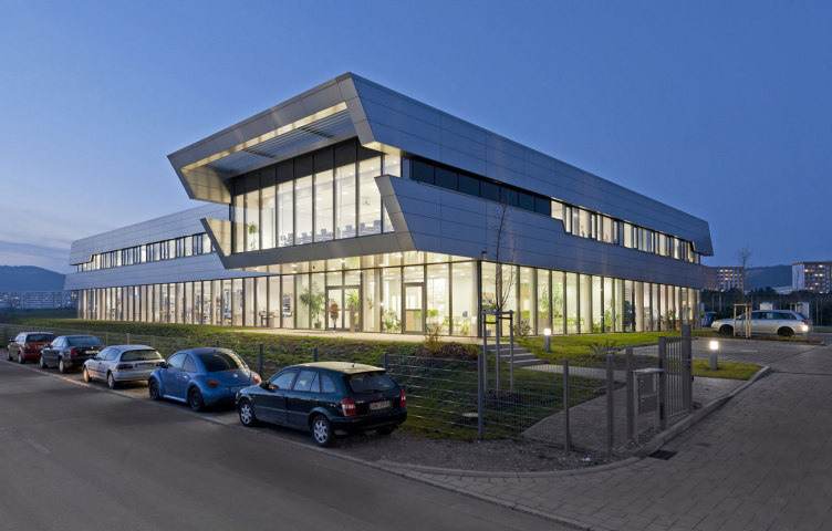 Die Firma piezosystem jena GmbH beabsichtigte im Zuge innerbetrieblicher Umstrukturierungsmaßnahmen die Errichtung einer neuen Firmenzentrale im Gewerbegebiet JenA4. Das neue Produktions- und Verwaltungsgebäude, dass sich aus zwei rechtwinklig zueinander liegenden Gebäudeflügeln zusammensetzt, wird über eine zentrale Treppen- und Aufzugsanlage im Bereich der Überlagerung der beiden Gebäudeflügel erschlossen.