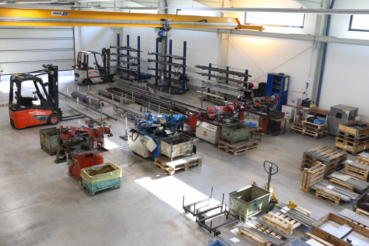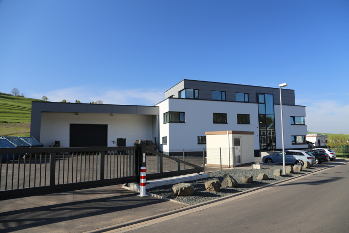 Die Planungsaufgabe umfasst den Neubau einer Produktionshalle mit vorgelagertem Bürogebäude im Gewerbegebiet "Große Herbstwiese" in Floh-Seligenthal". Der Baukörper folgt der Grundstücksgrenze und fügt sich in die vorhandene Hanglage ein.