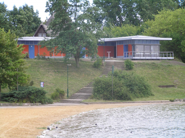 Das Gebäude beherbergt seit Saisonbeginn 2008 die neuen Sanitäranlagen und Umkleidebereiche sowie Wickelraum und Behinderten-WC für die sommerliche Badestrandnutzung.