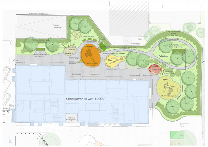 Neubau WIR-Quartier, AWO-Kindertagesstätte, Freianlagen - Übersichtsplan, Bild: Andrea Ziegenrücker