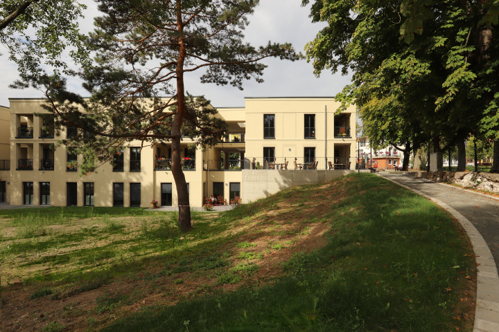 Am Schwanenteich in Ellrich entstand an einer weitläufigen Parkfläche eine Wohnanlage mit 11 barrierefreien Wohnungen sowie ein Café und eine private Akademie. Die verschiedenen Nutzungseinheiten sind in drei Gebäudeteilen untergebracht, die durch überdachte Laubengänge miteinander verbunden sind. Alle Bereiche werden über ein gemeinsames, zentrales Treppenhaus mit Aufzug erschlossen.