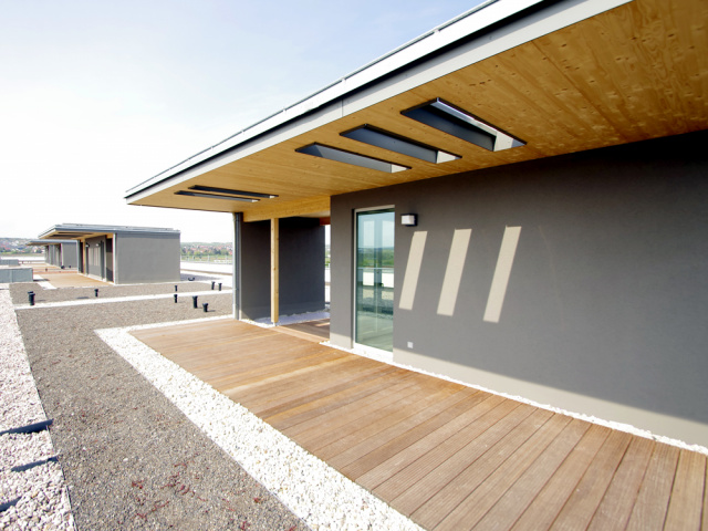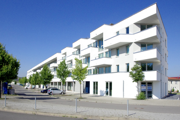 Der als Wohnanlage realiserte Neubau im Norden der Stadt Erfurt verfügt insgesamt über 61 Wohneinheiten, 12 gewerblich genutzte Appartements, 2 Ladengeschäfte und zahlreichen PKW-Stellplätzen. Das Objekt besteht aus 4 aneinandergereihten Häusern, die zu einem Gesamtkomplex verschmolzen sind. Alle Wohnungen sind barrierfefrei und mit einem Balkon sowie Einbauküche ausgestattet. Die Wohnungsgrößen reichen von Zwei-Raum-Wohnungen mit ca. 52 qm bis zu Vier-Raum-Wohnungen mit ca. 150 qm. Das Gebäude gliedert sich in vier Etagen. Im Erdgeschoss befinden sich die Appartements, Ladeneinheiten und Abstellräume. Im 1. bis 3. Obergeschoss die Wohneinheiten. Einige Wohnungen haben zusätzlich noch einen separaten Zugang auf eine Dachterrasse mit tollem Ausblick über die ganze Stadt.