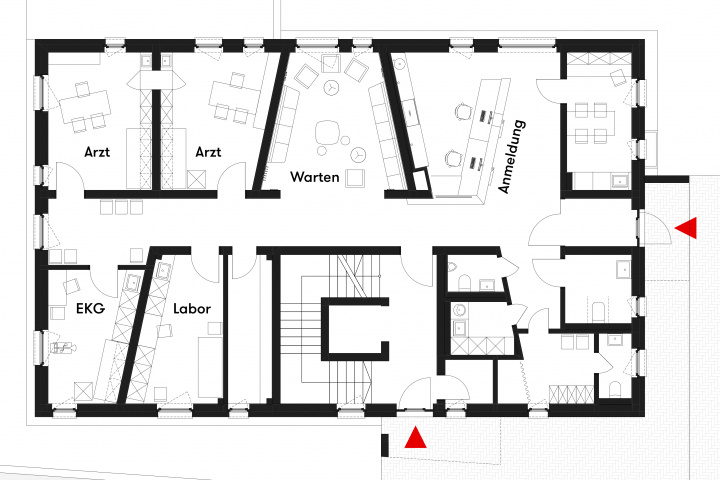 In der Nordhäuser Oberstadt entstand ein Mehrfamilienwohnhaus mit fünf Mietwohnungen und einer Arztpraxis. Es handelte sich um eines der letzten freien Grundstücke in diesem Stadtteil. Die Villenstruktur der umgebenden Bebauung wurde mit dem Neubau durch die kompakte Bauweise und das Mansarddach wieder aufgenommen. Aufgrund der Hanglage verfügt das Gebäude über zwei Vollgeschosse, ein ausgebautes Dachgeschoss sowie ein Souterrain. Die 2-4-Raum-Wohnungen sind zwischen 65-100qm groß. Sie werden über einen gemeinsamen Aufzug barrierefrei erschlossen und verfügen über Loggien. Im Erdgeschoss befindet sich eine internistische Praxis. Auf knapp 180qm Nutzfläche wurden hier Räumlichkeiten für das gesamte Spektrum der hausärztlichen Versorgung sowie der internistischen Diagnostik geschaffen.