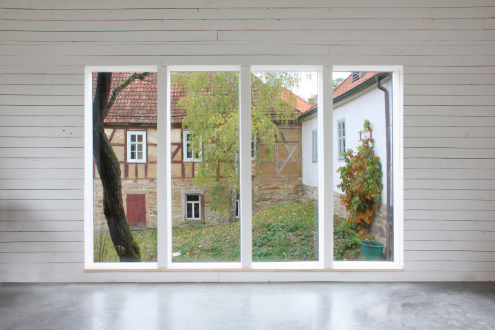 Schloss Bedheim nimmt an der Internationalen Bauausstellung Thüringen teil. Eines der ersten Projekte der IBA Thüringen ist die Neue Remise im Wirtschaftshof der Schlossanlage. Mit dem Holzbau zeigen Architekten und Auftraggeber, wie einfachen Mitteln und zum grossen Teil im Selbstbau architektonische Qualität im ländlichen Raum geschaffen werden kann. Der lange Baukörper füllt eine wichtige Fehlstelle im Denkmalensemble. Das aussen dunkle und zurückhaltende Haus überrascht im Inneren mit sehr hellen und eigenartigen Räumen. Beim Bau wurde weitgehend auf gekaufte Bauelementen verzichtet, auch die Fenster wurden selbst angefertigt. Das Projekt zeigt die Vorteile des Holzbaus und formuliert eine Gegenposition zum technisierten und hochautomatisierten Holzbau, wie er derzeit propagiert wird.
