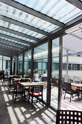 Die Umgestaltung der Haupteingangszone beinhaltet mit der Magistrale den öffentlichsten Bereich und zentralen Verkehrspunkt im bestehenden Verbinder zwischen dem bereits sanierten Bettenhaus 1 (Hochhaus) und dem Funktionsgebäude. Über fünf Ebenen führen hier alle Wege zusammen, entweder hinein, hindurch oder hinaus. Das Gebäude wurde in den 1970/80iger Jahren in Montagebauweise (Vereinheitlichte Geschossbauweise = VGB) errichtet. Der Verbinder ist ein Sonderbau und gehört baulich zum Bettenhaus 1. Die offene Halle erstreckt sich nach der Umgestaltung als über 25m Breite x 25m Länge mit zwei baulichen Rettungswegen.