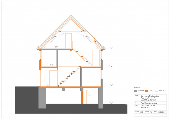 In der Scheune sind durch die Sanierung zwei Wohnungen von ca. 100 qm und ein Architekturbüro entstanden. Das Mühlengebäude wurde ebenfalls saniert, und zu einem Wohnhaus umbebaut. Bei den Sanierungsarbeiten wurde großer Wert auf den Erhalt der vorhandenen Bausubstanz und auf eine ökologische und nachhaltige Bauweise gelegt.