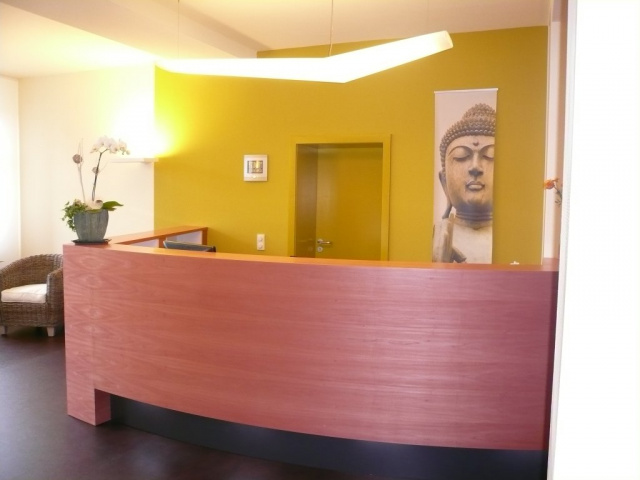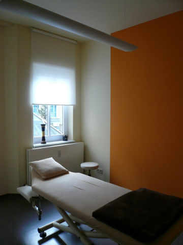 Die Räume einer Anwaltskanzlei haben wir in eine Praxis für Physiotherapie umgenutzt. Die Baufrau wünschte sich Räume, die ihr Möglichkeiten eröffnen, ihre Patienten in harmonischer kräftigender Atmosphäre zu behandeln, ihnen mit einer gewissen Heiterkeit in der Raumausstrahlung Ängste vor der Behandlung zu nehmen und alle Sinne zur Gesundung anzuregen. Insbesondere das Farb- und Lichtkonzept sollte variable Möglichkeiten zur Raumnutzung schaffen. Neben der klassischen physiotherapeutischen Behandlung sollen perspektivisch Yoga - und Entspannungskurse sowie verschiedene Wellnesangebote das Tätigkeitsfeld der Praxis bereichern.