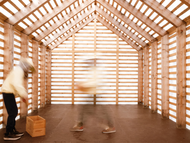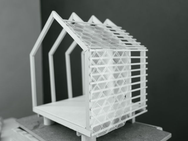 Der Lehrbienenstand ist ein multifunktionaler Schutzraum für Imker- und Naturfreunde - ein Ort zum Lehren und Lernen. Ziel war es, aus dem kleinen Vereinsbudget, Fördermitteln sowie durch eine schrittweisen Umsetzung (3 Jahre) das Maximum herauszuholen. Heftig trafen Baupreisanstieg und Materialmangel in Folge der Pandemie das Projekt. Game over? Für die Fassade war kreatives Umdenken gefragt. Die spontane Anfrage an eine Kunststofffirma, ob diese Restbestände übrig hätte, gab den Impuls zur experimentellen Gebäudehülle. In einer selbstentwickelten Form, inspiriert von traditionellen Thüringer Schieferschindeln, wurden die Fassadenplatten aus recyceltem Kunststoffgranulat gefertigt. Der aufs Minimum reduzierte durchscheinende Baukörper schwebt inmitten der Blühwiese des Vereinsgeländes.