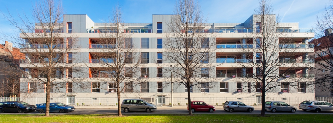 Errichtet wurden 30 barrierefreie Wohneinheiten mit 100 bis 180 m² Wohnfläche sowie drei neue Treppentürme inklusive Aufzügen. Die für den Wohnungsbau ungünstige Gebäudetiefe von 18 Metern konnte mit innenliegenden Bädern, großen Wohn- und Essbereichen und eingezogenen Loggien nutzbar gemacht werden.