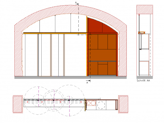 Mit eigentlich zwei Möbeln und etwas Glas wurde zurückhaltend jedoch nicht historisierend die Aufgabe realisiert.