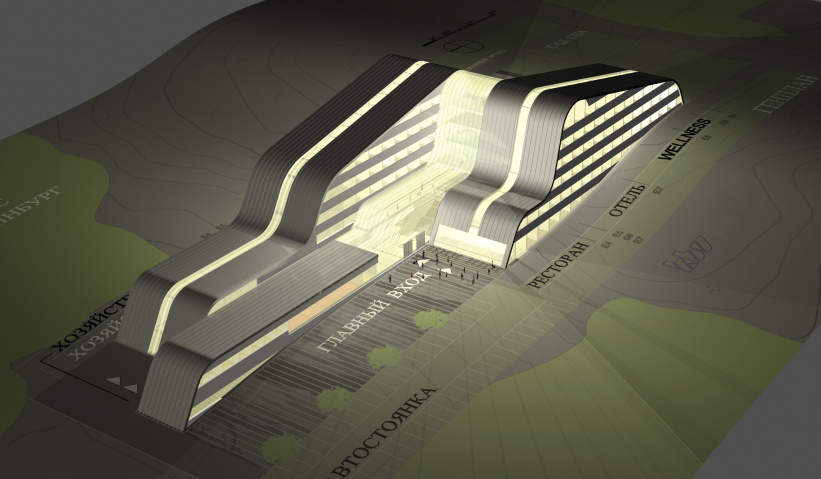 Hotel mit 80 Einzelzimmern und 10 Doppelzimmern im russischen Jekaterinburg. Das Hotel besitzt einen Wirtschaftsblock, ein Rehabilitationszentrum mit Funktionsdiagnostik, Arztdiensten, Physiotherapie, Turnhalle, Wellnesszentrum mit Friseur, Massage, Kosmetik, Fitness, Saunakomplex und Schwimmbecken.