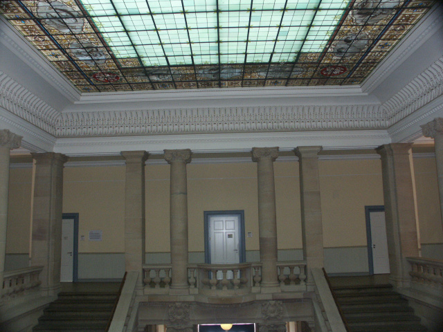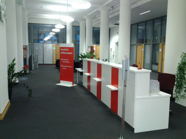 wurde. Der repräsentative viergeschossige Massivbau mit architektonisch reich gegliederter Fassade ist heute Hauptsitz der Röhn-Rennsteig-Sparkasse. Im Zuge einer Brandverhütungsschau wurden brandschutztechnische Mängel sichtbar, die in mehreren Bauabschnitten seit 2009 schrittweise beseitigt wurden (Einbau von Brandabschnittwänden, brandschutztechnische Ertüchtigung von Bauteilen, Bildung von Rauchabschnitten). Grundlage dafür bildete das durch unser Büro erstellte Brandschutzkonzept. Im Zuge dieser Baumaßnahmen wurden auch umfangreiche Modernisierungen vorgenommen (Neugestaltung der SB-Zone, Einbau einer Wartungsbühne für das Glasdach, Neugestaltung des