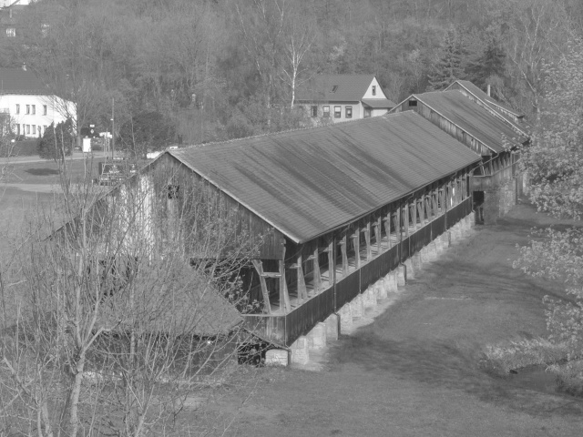 Gradierwerk - Zerstäuberhalle vor Sanierung mit verformten Dachtragwerk, Bild: Nils Havermann -