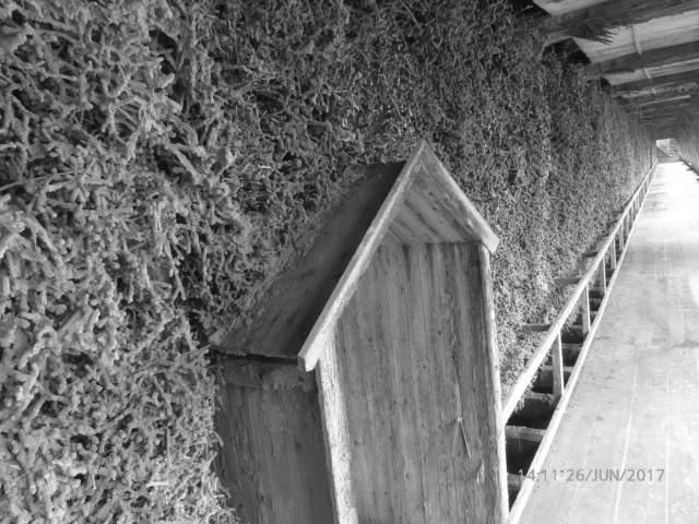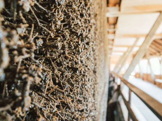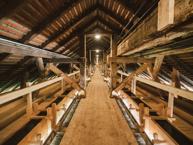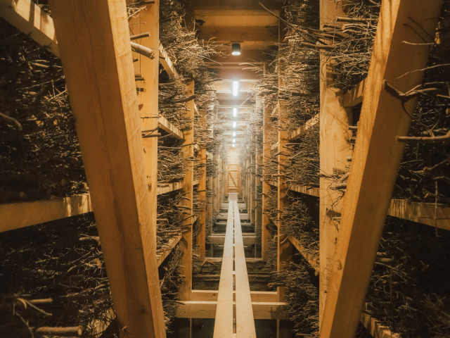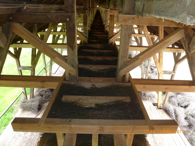 Gradierwerk - Sanierte Deckenbalkenlage mit neuen Schwarzdornbündeln, Bild: Nils Havermann -