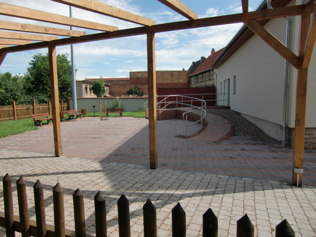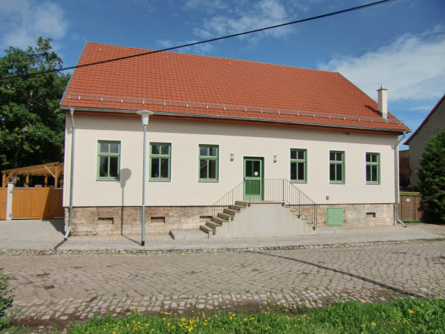 Die vorhandene ehemalige Gemeindeschänke besteht aus einem zweigeschossigen Haupthaus und einem zweigeschossigen Nebengebäude. Im Hofbereich wurden noch weitere eingeschossige Nebengebäude angegliedert, in denen hauptsächlich die ehemaligen und erneuerten Toilettenanlagen untergebracht wurden. Diese Nebengebäude sind baufällig und nicht mehr sanierbar. Sie werden deshalb abgerissen. Das vorhandene Hauptgebäude wird bis zum Erdgeschoss inkl. der Geschossdecke vollständig rückgebaut. Die Decke im Bereich des Gewölbes bleibt erhalten. Die vorhandenen Erdgeschosswände werden auf ihren Bauzustand geprüft und im Ergebnis der Untersuchungen erhalten oder statisch verstärkt. Zur Verbesserung der Energiebilanz werden die Außenwände mit einem mineralischen Wärmedämmverbundsystem verputzt. Als Dachkonstruktion werden Satteldachfachbrettbinder eingesetzt. Infolge der Verstrebungen kann der Dachraum nicht ausgebaut werden. Der Schornstein und der Dachraum sind mittels einer Einschubtreppe im Heizungs- und Öllagerraum begehbar. Anstelle einer massiven Decke werden neue Unterdecken an den Untergurten der Brettbinder abgehängt, in die die Elektroanlagen integriert werden. Im Erdgeschoss werden zwei Versammlungsräume mit jeweils 30 m², ein Büro/Lager mit ca. 18 m², eine Teeküche, getrennte Sanitäranlagen sowie ein Heizungsraum vorgesehen. Als Heizung soll eine Ölheizung mit ca. 2000 l Ölvorrat zum Einsatz kommen. Alle alten Fenster werden ausgebaut und durch neue Holz- isolierfenster mit Sprossenteilung ersetzt. Die Außentüren werden ebenfalls aus Holz gefertigt und erhalten ein Glasausschnitt. Das künftige Bürgerhaus hat nach wie vor einen Haupteingang zur Straßenseite und einen Hofzugang, vor dem wegen der vorhandenen Geländehöhen eine Freitreppen-anlage vorgesehen wird.