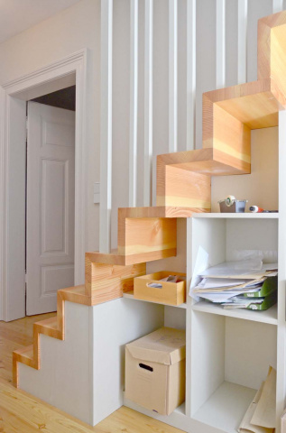 Regalstiege zum ausgebauten Dachgeschoss, Bild: Foto: Bleicher-Grafikdesign -