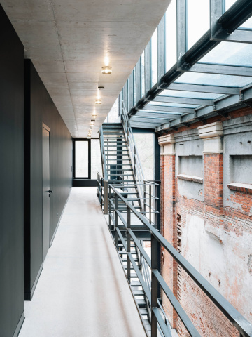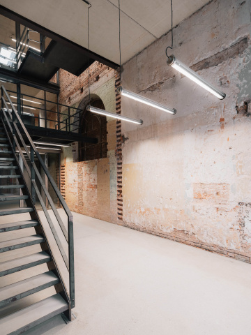 Die Bausubstanz zeichnet sich durch ihren besonderen Industriecharakter aus. Der Charme der morbiden Oberflächen und Materialien, der nicht mehr genutzten Technik und deren Befestigungen und die grundsolide, stabile Tragstruktur folgte einem übergeordneten Leitbild „ALT bleibt ALT – Wie wenig ist genug?“ als Sanierungskonzept.