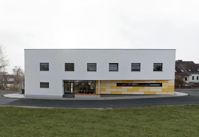Unter Wahrung der vorhandenen Substanz wurde das Gebäude straßen- und gartenseitig durch schmale Anbauten erweitert. Die vorhandenen Gruppenräume und deren Nebenflächen konnten so neu sortiert und großzügiger gestaltet werden.