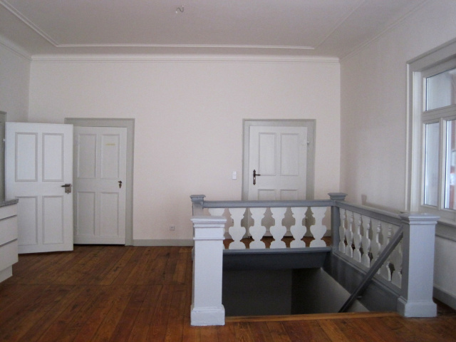 Zur Gewährleistung der Nutzung und Lösung der funktionalen Probleme im Bereich der Erschließung der Nutzungseinheiten wurde nach Abbruch des alten Zwischenbaus die ursprüngliche Hoffassade freigelegt und durch den Neubau eines Treppenhauses in Sichtbeton ergänzt.