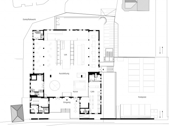 An der Straßenseite wurde ein vom Dampflokwerk unabhängiger, repräsentativer und barrierefreier Besuchereingang geschaffen. Das Foyer empfängt mit einem Kassen- und Infobereich. Im Zentrum der Ausstellung steht eine Dampflok, die durch vertikale Schnitte geteilt wurde. Mit Medien und Grafiken ergänzt macht sie ihre Konstruktion und Funktionsweise erfahrbar. Die Einordnung dieses über 36 Tonnen schweren Exponats in das denkmalgeschützte Gebäude war eine große Herausforderung für Planende und Ausführende.