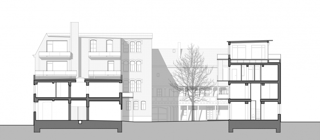 Durch den Rückbau einzelner Gebäudeteile ist eine gute Belichtung für die Wohnungen garantiert und der stimmungsvolle Innenhof kann zu einem Zentrum für Erholung und Nachbarschaftsleben werden.