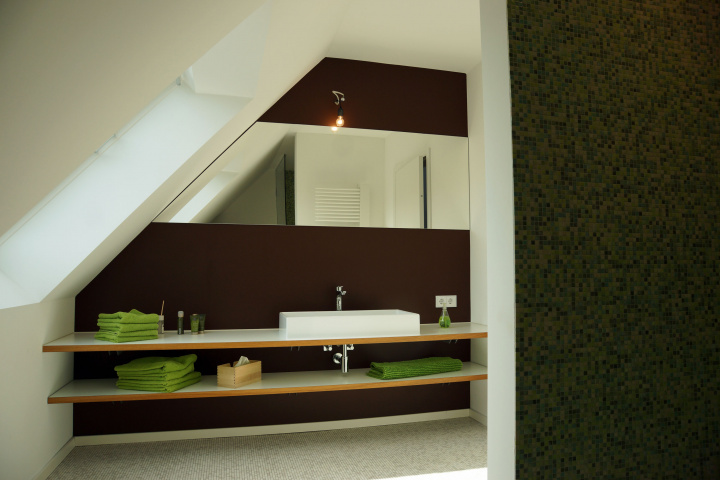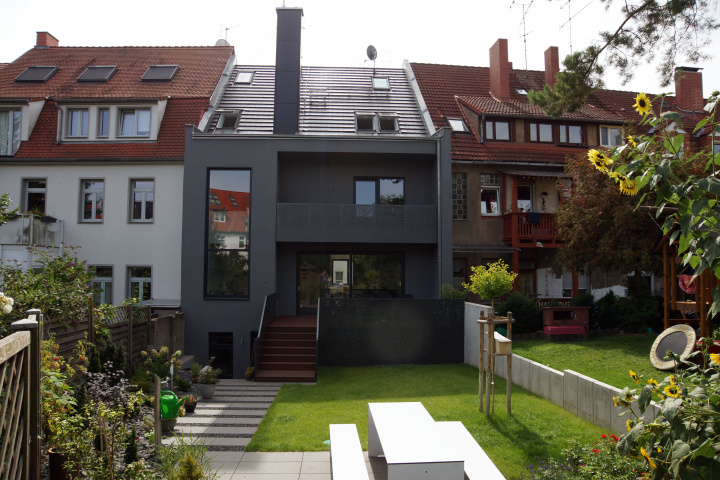 Ziel dieser Sanierungs- und Umbaumaßnahme war die Revitalisierung eines leerstehenden Wohn- und Geschäftshauses in der Erfurter Brühlervorstadt. Das Gebäude wurde in den 70iger Jahren des vorigen Jahrhunderts in einer kriegsbedingten Baulücke errichtet. Die im Verhältnis zur angrenzenden Bebauung niedrigere Firsthöhe wurde im Rahmen dieser Maßnahme wieder angehoben, um ein einheitliches Straßenbild zu gewährleisten und den räumlichen Anforderungen einer Familie gerecht zu werden. In enger Zusammenarbeit mit der Bauherrin entstand auf drei Ebenen ein großzügiges, lichtdurchflutetes Eigenheim. Aufgrund seiner Fassadengestaltung hebt sich das Gebäude von seiner Nachbarbebauung ab und dokumentiert so auch zukünftig die unterschiedliche Historie im Verhältnis zu den Nachbargebäuden.