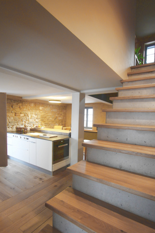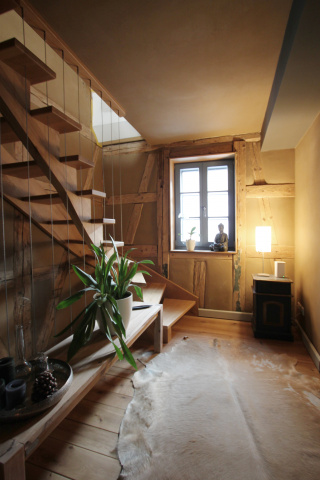 Zwei Familien - ein Haus. 316 Jahre alt, schlechte Bausubstanz, mehrfach ergänzter Hauptkörper, auf gotischen Gewändesteinen gebaut und mit Porzellan angeschüttet. Ein historischer Ort welcher erhalten werden wollte, aber die Sprache unserer Zeit spricht. Mit gerechneten Fundamenten, intaktem Holz, einer guten Energiebilanz, behaglichem Wohnklima, autentischen Materialien, guter Gestaltung und vor allem: guten Grundrissen. So präsentiert es sich nach zweijähriger Bauzeit nicht nur den Bewohnern - sondern auch den Besuchern. Die wie zufällig im Schutze der prominenten Nachbarn auf den letzen Teil des fast vergessenen Rundlingsdorfes Untermhaus stoßen und nun sich über ein Anwesen "unterm Haus" als zeitgemäßem Mix aus Vergangenem und Modernen freuen können.