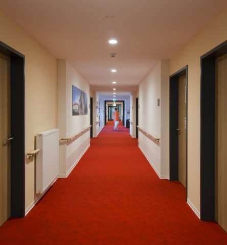Gepflegt wir auf 6 Wohnbereichen mit jeweils eigenen Wohn- und Aufenthaltsbereich und einer kleinen Küche für die tägliche Versorgung vor Ort.
